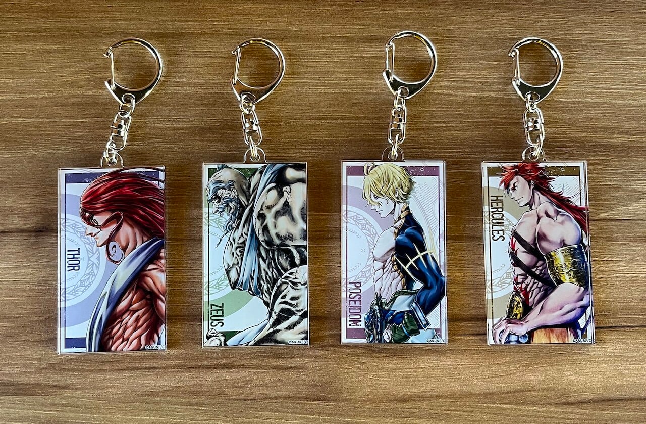 พวงกุญแจอะคริลิคลายหน้าปกหนังสือ 『Record of Ragnarok』 พวงกุญแจอะคริลิคตัวแทนเทพเจ้า "ธอร์" "ซุส" "โพไซดอน" "เฮราคลีส"!